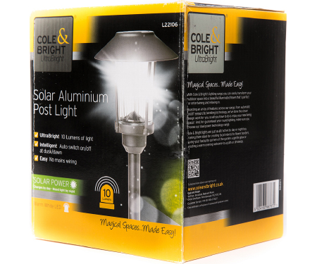 10 out of 5 stars 1. Cole bright solar powered graphite coloured glass aluminium post light 50cm h x 17cm dia white led garden light with 10 lumens output set of 6 lights.