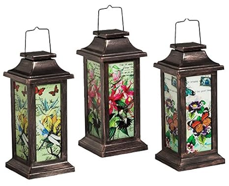 Product moonrays 92276 solar powered hanging floral stained glass led lantern 24 inch above ground height on the shepherds hook included made from metal and plastic rechargeable battery included. New creative dragonfly garden friends hanging solar lantern. With millions of unique furniture decor and housewares options well help you find the perfect solution.